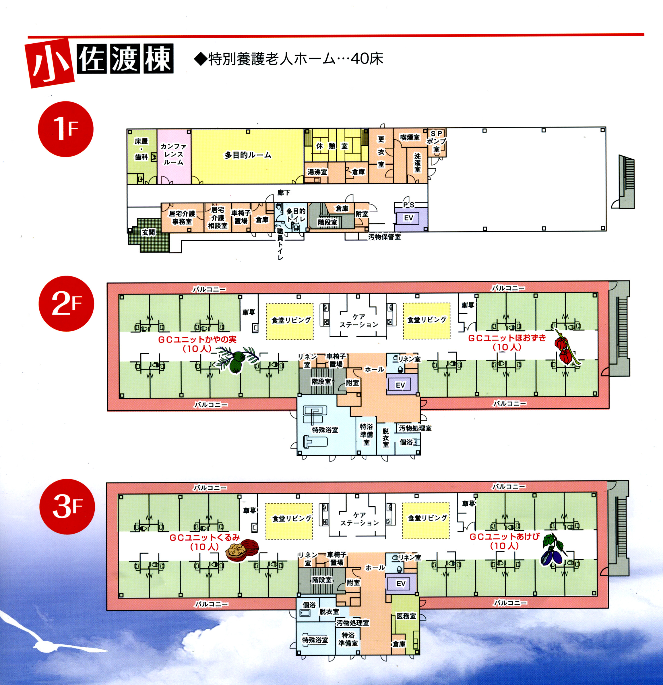 スマイル赤泊は、佐渡市で最初の全室個室ユニットケアの新型特養です。各ユニットには、キッチンとリビング、その周りに個人の個室があります。使い慣れたご自分の家具等を持ち込むことも可能です。自分風にレイアウトし、それぞれの空間でお過ごしいただけます。また、ご家族の方もいつでもお泊りいただけます(寝具の貸し出しと食事は実費にてご用意できます。)ので、ご希望の方はお気軽に声をかけてください。各ユニットごとの家庭的な雰囲気の中でのケアを目指していきます。